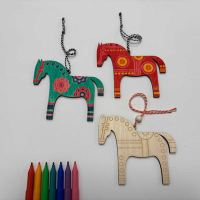 Unsere Dala-Pferde aus Holz vereinen traditionelles Design mit moderner Kreativität. Drei verschiedene, filigran gravierte Muster stehen zur Auswahl – jedes Pferd wartet darauf, von dir farbenfroh gestaltet zu werden. Sie sind perfekt für entspannte, kreative Stunden und ein wunderschönes Projekt für Kinder und Erwachsene. Die Rückseite ist nicht graviert, sodass du oder deine Kinder dort eurer Kreativität freien Lauf lassen könnt.