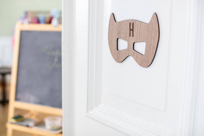 Superheld Maske Türschild aus Holz