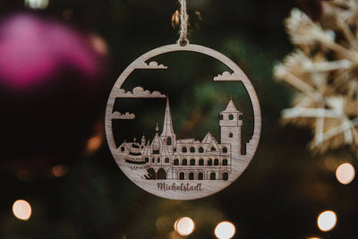Der berühmte Michelstädter Weihnachtsmarkt wird mit diesem schönen Weihnachtsbaumschmuck aus Holz zum Leben erweckt Sieh dir das Rathaus, die Kirche und den großen Weihnachtsbaum an, der uns jedes Jahr verzaubert.
