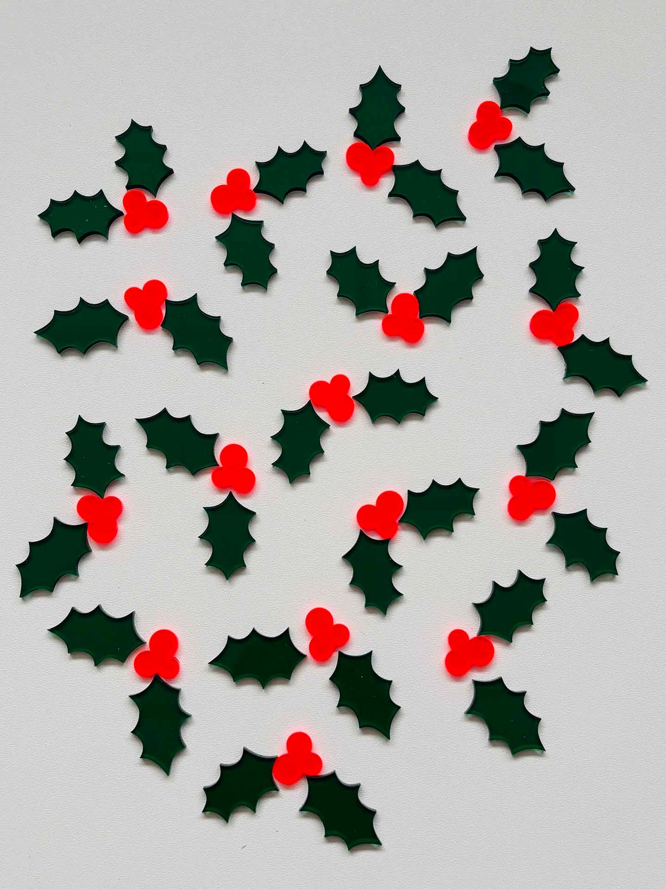 Includes 16 individual holly sets (each with leaves and berries) — perfect for scattering, decorating, wrapping or DIY projects.